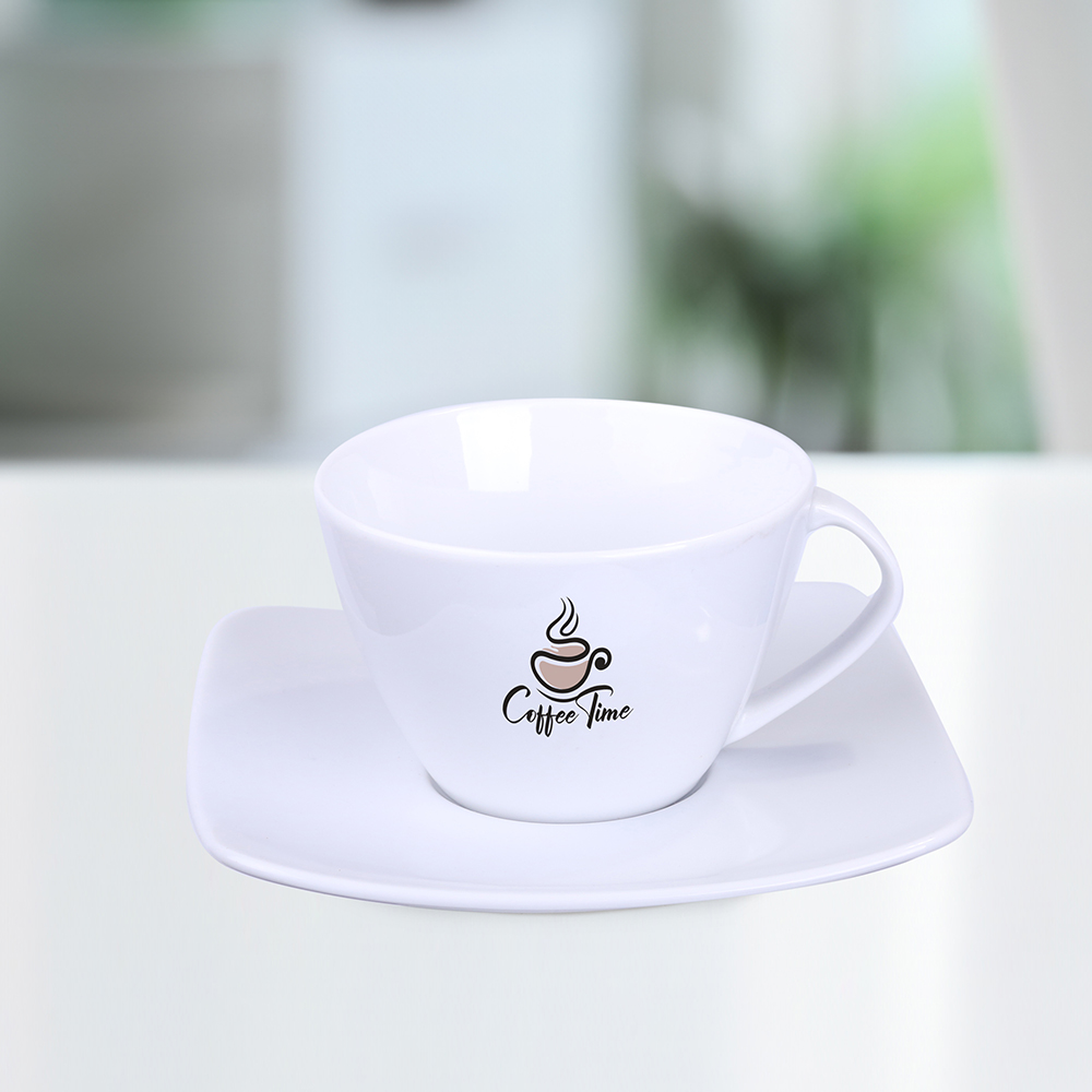 Elegance with a pinch of Fantasy. A porcelain set with wavy plate, which gives it an unique character. Combined with a branding, allow to bring a passion into every moment spent together. Produced in EU.